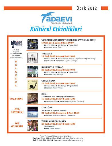Bu hafta sonu Adaevi’ndeki programları sizlere ileteyim dedim.