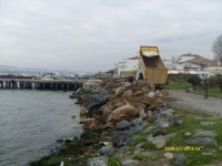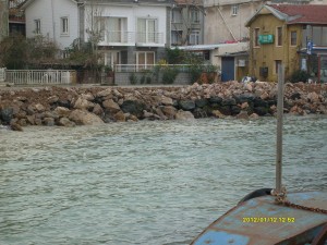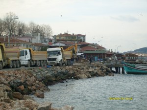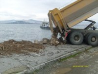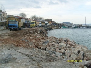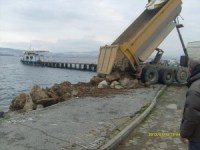 Dolayısıyla aşağıdaki fotoğraflar 12/01/2012 tarihinde Adalar Belediyesi’nin deniz tarafında bulunan iskeleden Façyo Restaurant önündeki anroşman taşlarının üzerine daha evvelden dökülen 3-4 kamyon hafriyattan çıkmış irili ufaklı ve bolca topraklı malzemeye ilaveten 15 kamyon daha benzer nitelikli hafriyat getirilmiş ve eski anroşman taşlarının üzerine dökülmüş, ekskavatörle denize doğru sürülmüş tam bir ÇEVRE KATLİAMI yapılmıştır.