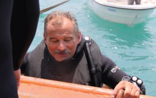 Tabii scuba nerdee? 80’de rejim değişti, ithalat ihracat değişti, yavaş yavaş malzeme gelmeye başladı. Ben de 80’de bir tüp aldım, 72 tarihli, galvaniz, 2250 psı, 150 atm’lik bir tüp. Ben bu tüpe 210 basıyordum. Neden? HABAŞ’a götürüyorum da ondan… Buradan kalkıyorum, Eminönü’ne, Eminönü’den Topkapı minibüsü, Topkapı’dan Sağmalcılar minübüsüne bin elinde 15 kiloluk tüple… Habaş’a git… Eeee bir nefesin kıymeti oluyor tabi… O zamanlar kimsenin baktığı yok, testli mi değil mi? Üretim tarihi ne, kullanım basıncı ne, koymuşlar oraya bir adam ne getirsen basıyor, orada koca koca tüpler var adam bir açıyor bir bakıyorsun ibre 200’e dayanmış bir anda, tüp yanıyor. Adamın haberi bile yok bu 200 mü 150lik mi?… Doldurduğun tüple aynı yolu geri dön Ada’ya gel, o nefesi sonra böyle gıdım gıdım kullan… Birinin teknesinin sorunu olur, birinin aşağıda birşeyi kalır… O tüple hep böyle işler yapılıyordu..