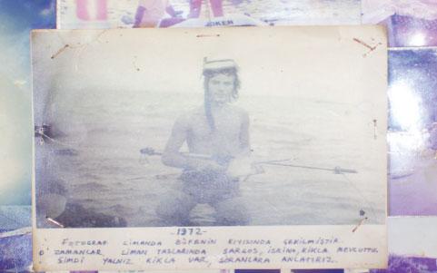 68’de ilk zıpkınımı aldım. Buralarda kefal vuruyordum 68’de. 69’da liman inşaatı başladı burada, sonra mütahit işi bırakıp gidince atılmış olan taşlara çok Sargoz geldi. Sargozlar çok ama elbise yok üşüyorum. Ben üşüyen biriyisiyim ve yüzmek için de denize girmem, bir maskem bir paletim olmadan suya yüzmek için hâlâ girmem. İşte böyle Sargozlarla beraber başladık diyelim.