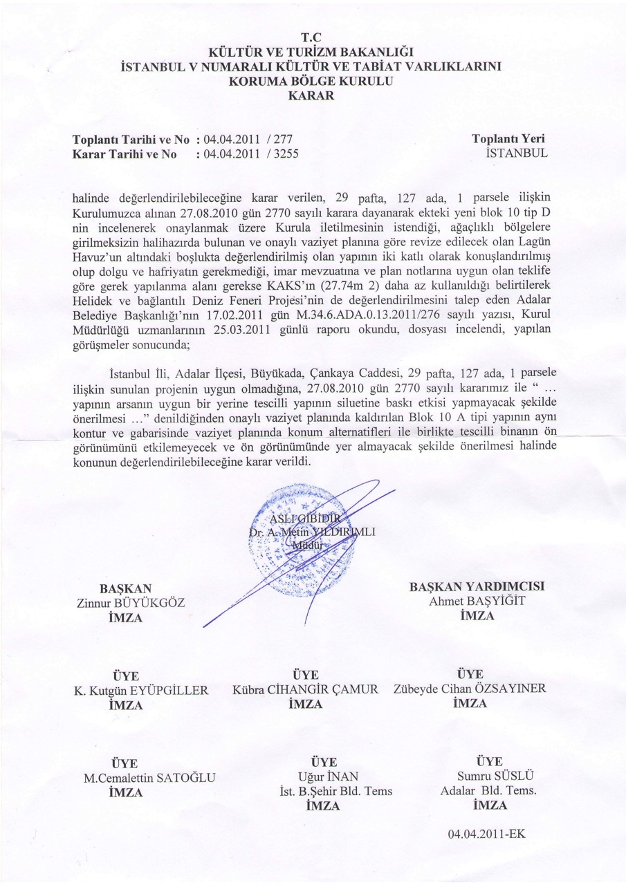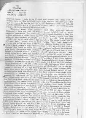 […] İSTANBUL İLİ, ADALAR İLÇESİ, BÜYÜKADA, ÇANKAYA CADDESİ, 29 PAFTA, 127 ADA, 1 PARSELE İLİŞKİN SUNULAN PROJENİN UYGUN OLMADIĞINA…