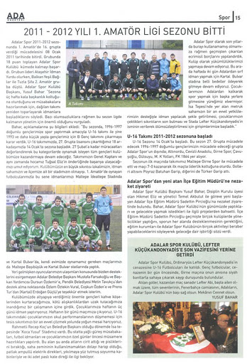 11-Adalar Spor: “Ada Gazetesi’nin 15 Ocak-31 0cak 2012 tarihli son sayısında…”