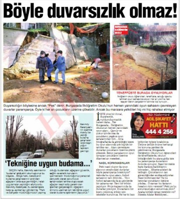Peki nasıl oluyor da oyun alanının etrafındaki duvarlar böyle paramparça bırakılıyor? Aslında bu oyun alanı, futbol sahasının tam dibinde… Ve o futbol sahasında da şu günlerde bir çalışmavar. Yeni Bir tribün yapılıyor. Proje kapsamında da duvarlar yıkılıyor. Duvarların bir kısmı yıkılmış, tribün için iskeleler kurulmuş. Ne var ki bazı bölümler öylece bırakılmış.