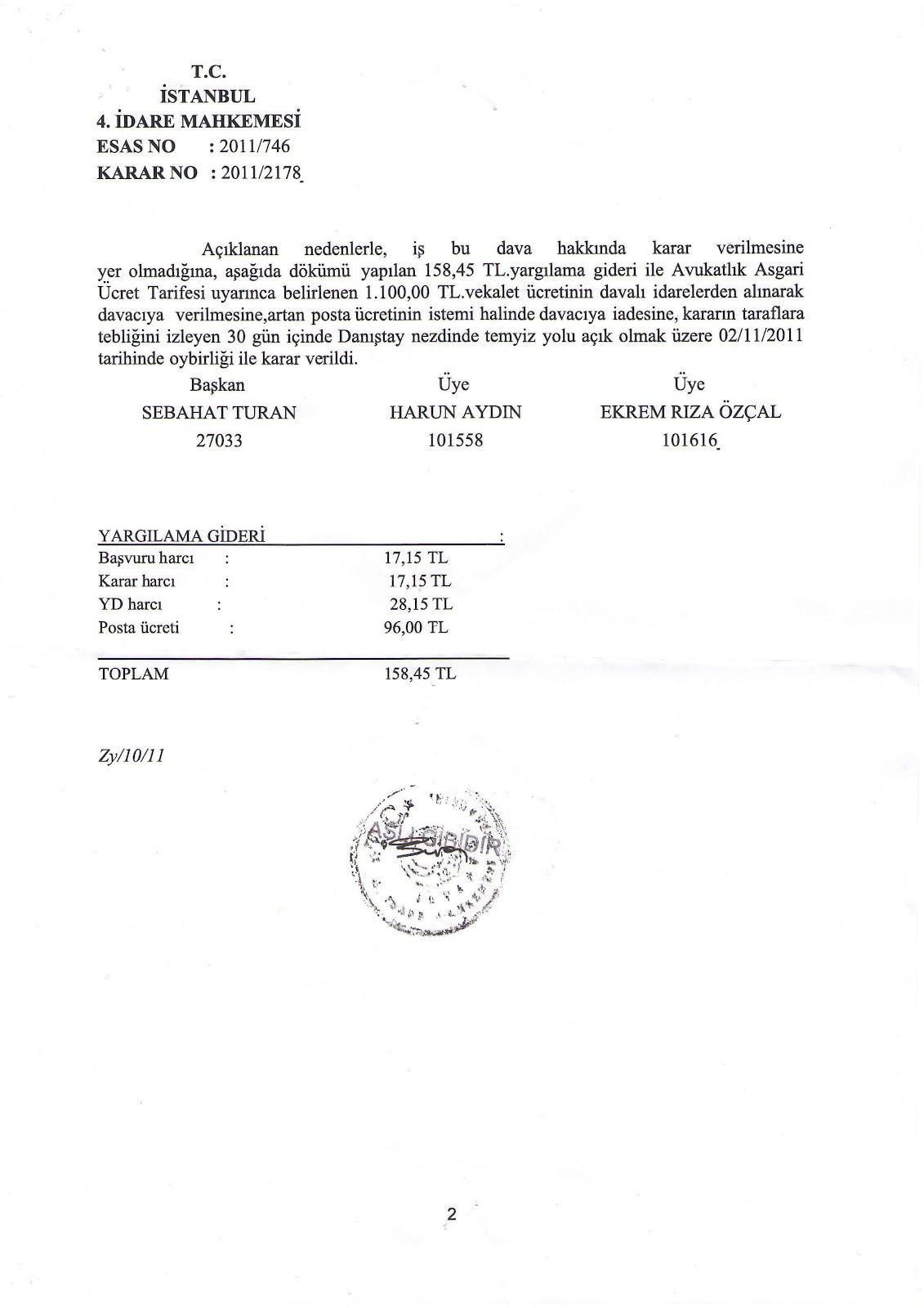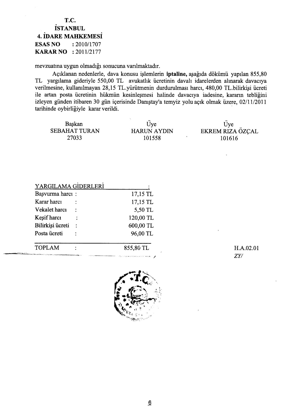 Eki: İlgili mahkeme karar sureti
