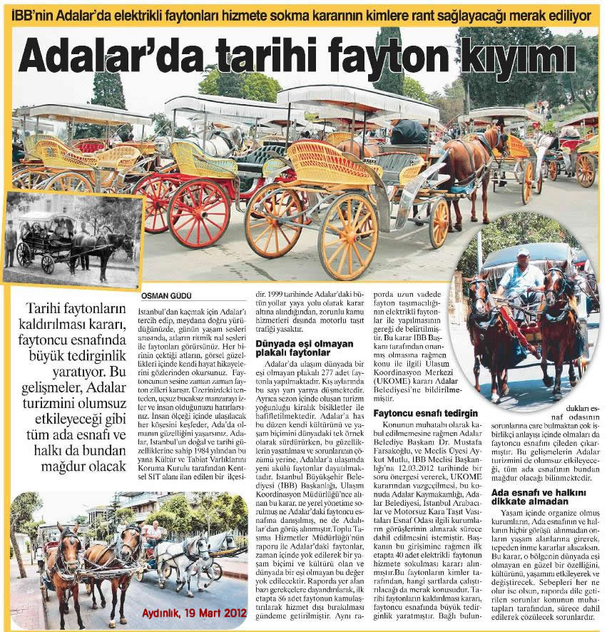 ADALAR POSTASI-2687/4 (26.3.2012)‘de yayımlanan Emine Çiğdem Tugay: “Asıl mesele faytonların olması ya da olmaması değil, nasıl ol(durul)ması gerektiğidir!…” yazısı bilahare meraklısına ilgili kimi belge-bilge şu adreslerde: