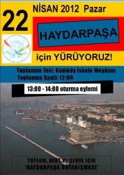 Haydarpaşa garı ve çevresini her türlü yasa ve yönetmeliği, bilimsel ve etik kuralı hiçe sayarak yüksek yoğunluklu yapılaşmaya açıp küresel rant sermayesinin kullanımına sunmaya çalışanların toplumun olanca tepkisine rağmen 25.11.2011 tarihinde Büyükşehir Belediye Meclisi’nden onaylatıp, uygulamaya koymak istedikleri rant projesine ve halkımızın ucuz ve güvenli ulaşım hakkını engelleyerek demiryolu hattının ulaşıma kapatılmasına karşı 22 NİSAN PAZAR günü HAYDARPAŞA GARI’na yürüyoruz…