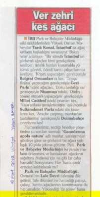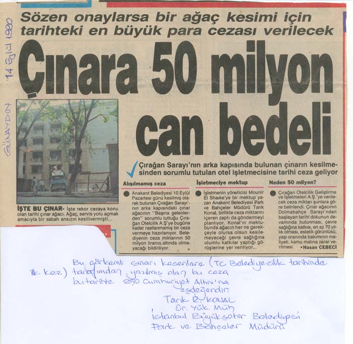 7- Tarık Konal: “İstanbul’un ağaçlarının çeşitli gerekçelerle kesilmelerinden duyduğunuz kaygıyı belirten iletinizi aldım…”