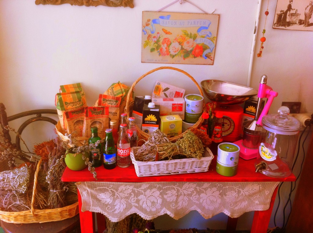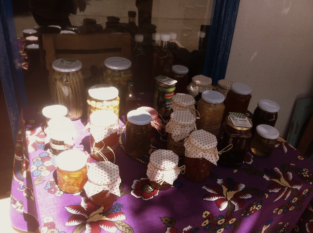 Kahvelerimizi içerken, yan dükkanda satılan reçeller dikkatimi çekti. Hemen kapıda duran bu küçük ve şirin dükkanın sahibesi Emine hanımla konuşmaya başladım.Kendisi okldukça hoş sohbet ve tatlı olan bu hanım, bana ürünlerinden bahsetti. Ev’den ismini verdiği dükkanında, reçeller, soslar, kurabiyeler, turşu çeşitleri gibi ev yapımı, kendisinin ürettiği ürünler satmaktadır. Hatta, gittigidiyor.com’da da dükkanı var ve sizler oraya gitmeden sipariş verebiliyorsunuz. Önümüzdeki hafta sonu ben kendisinden mimoza reçeli başta olmak üzere, bir kaç reçel çeşidi, soslardan ve turşulardan alacağım.
