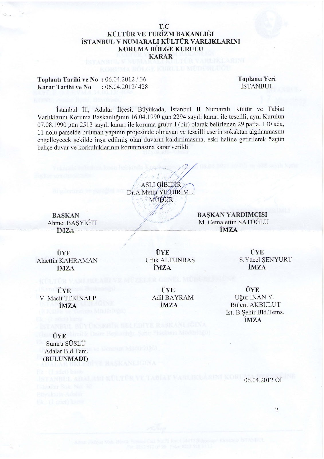 Ve yine umarım ki; SEFEROĞLU örneği gibi, yüzlerce ağacın yok oluşunu pişkinlikle seyreden utanmaz sorumsuzlar, SANATORYUM için de aynı pisliği Adalar’da sergilemeyi düşünmezler.