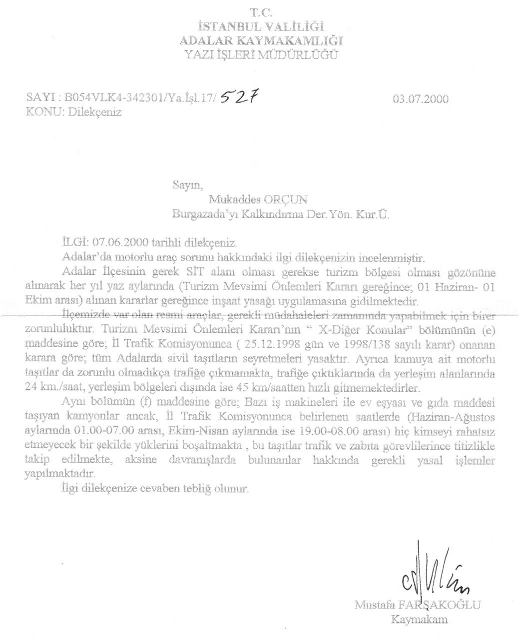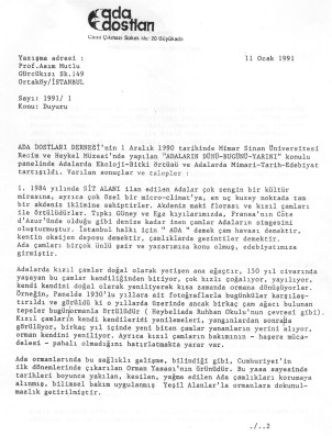 İlgi: a) İstanbul Adaları Kültür ve Tabiat Varlıklarını Koruma Derneği’nin 04.03.2012 günlü başvurusu