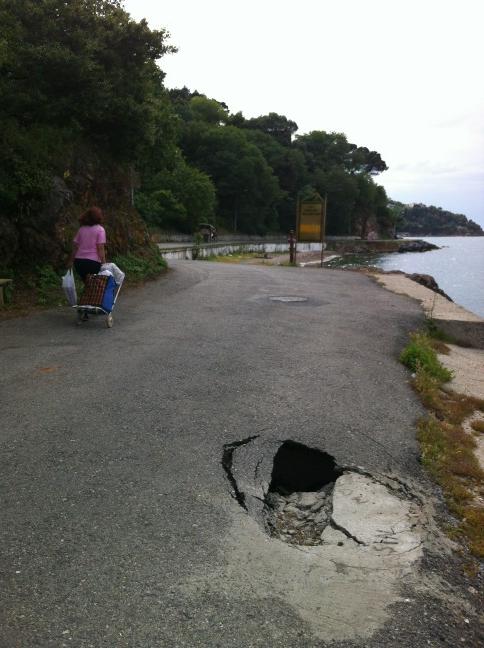 Ada’da yollar denize kayıyor, büyük çukurlar tehlike saçıyor.