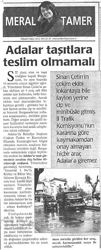 9- Baki Nedim Baltacı: “Aylar önce yazdığım Terrace-Lido’yu da kapsayan kaçaklarla ilgili yazımın [ADALAR POSTASI-2670/6(25.2.2012)]; AKP, CHP, MHP ve TKP’nin tavırsız kaldığını belirten bölümüne alınganlık gösteren bir kısım TKP yanlılarının cevap niteliğindeki yazılarının sorun haline geldiğini ADALAR POSTASI-2698/9(25.5.2012)‘ndan öğrenmiş bulunmaktayım…”