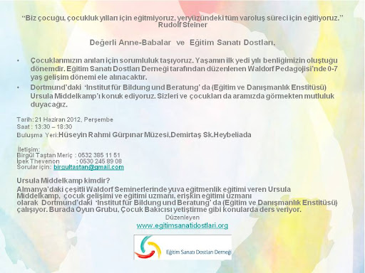 64- Birgül Taştan Meriç: “21 Haziran 2012’de Heybeliada’da Waldorf Pedagojisi semineri…”