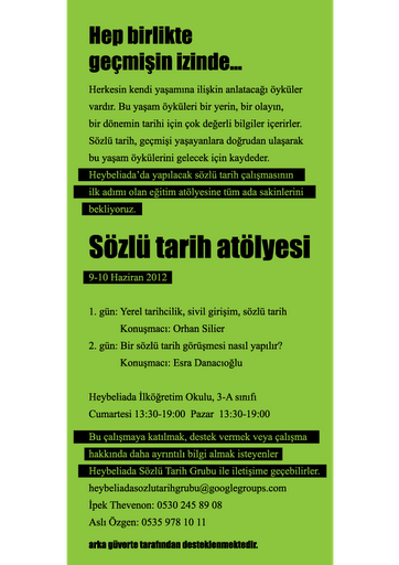 69- Çevreye Duyarlı Adalar Halkı: “Adalar’daki kaçaklara göz yumanlara, halka sormadan Seferoğlu korusunun talan edilmesine izin verenlere karşı demokratik protesto hakkımızı kullanmak üzere 30 Haziran 2012 Cumartesi saat 18:00’da Büyükada motor iskelesi önünde buluşuyoruz…”