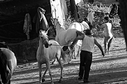Atlar huzursuz. Havada yanık ağaç kokusu var. Heybeli.