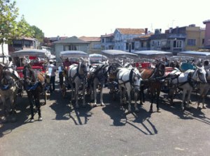 Hızlı deniz otobüsü bir durak Heybeliada’nın ardından Büyükada’ya ulaşıyor. Ada’ya gelir gelmez huzuru ve temiz havayı hissediyorsunuz. Adada’da araba olmadığı için ulaşım 230 tane faytonla sağlanıyor. Faytonlarla adada küçük tur gezinti yapmak isteyenler 65 TL’yi gözden çıkartmak durumunda…