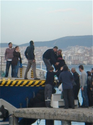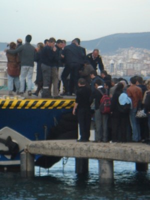 kaptan hoparlörden sesleniyor: “teker teker gelin,”