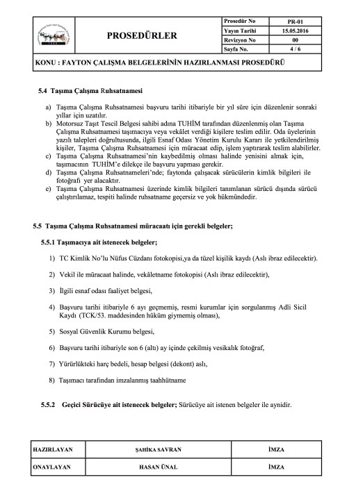 Fayton Taşımacılığı Uygulama Esasları… » PR-01 FAYTON ÇALIŞMA BELGE HAZ.PR.