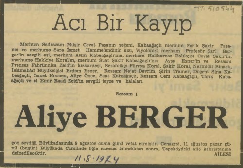 Aliye Berger, Yusuf Taktak Koleksiyonu- SALT Araştırma Arşivi.