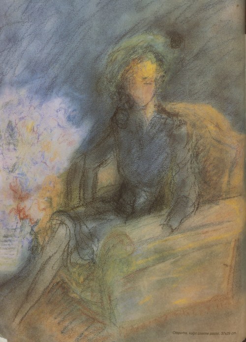 — Oldu olacak benim de küçük bir katkım bulunsun Sayın Aliye Berger’in saygıdeğer anısına. “Alie Berger Boronai” şeklinde imzaladığı ve sol alt köşesine Fransızca “deneme gravürleri” (gravures d’essai) yazdığı bu özgün çalışmasında, sanıyorum Büyükada’da, keman çalışmakta olan eşini resmetmiş (Güzin Özen Yılmaz koleksiyonu)