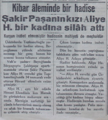 “Aliye H.ın Katil Kastiyle Silâh Attığı Tesbit Ediliyor!”, Cumhuriyet, 30.6.1929, 1.