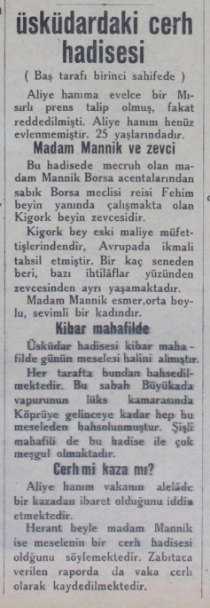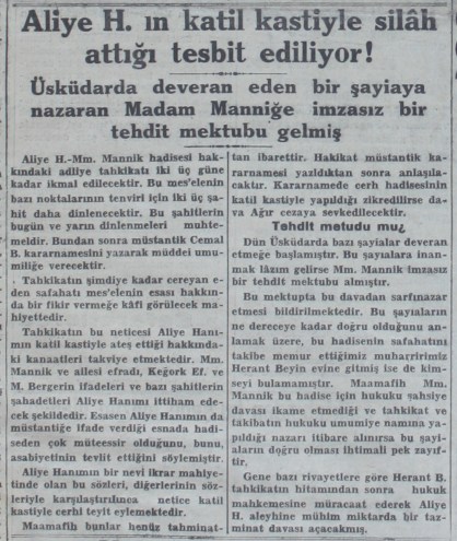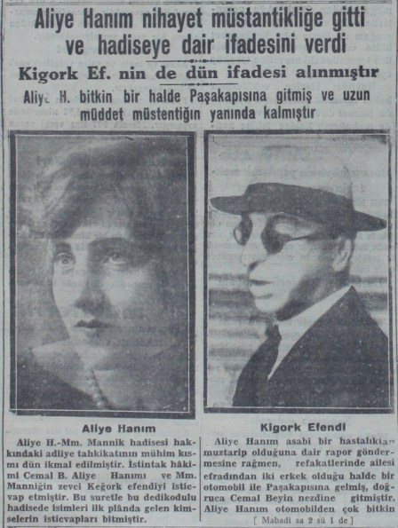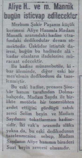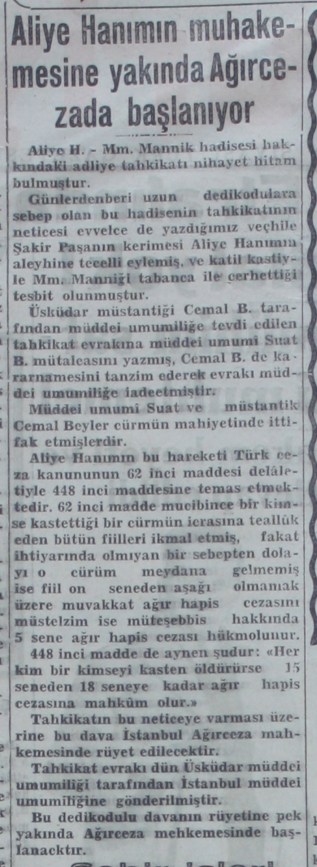 “Aliye H. ve M. Manniğin İfadeleri Alınacak”, Cumhuriyet, 22.6.1929, 2.