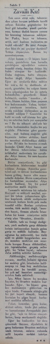“Aliye H. Davası”, Cumhuriyet, (25.7.1929)1.