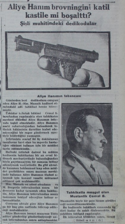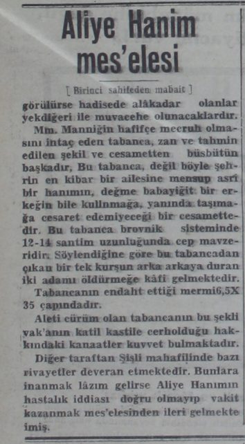 “Aliye Hanım Brovningini Katil Kastile mi Boşalttı?”, Cumhuriyet, 27.6.1929, 1, 2.