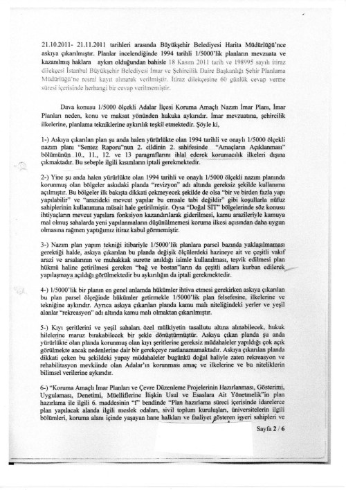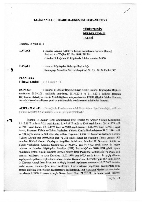 1. İAKTVKD’nin 1/5000 ölçekli Adalar Koruma Amaçlı Nazım İmar Planı’yla ilgili 13.03.2012 tarihli dava dilekçesi (6 sayfa)
