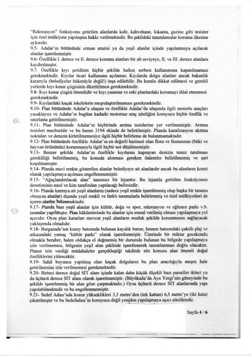 Adalar’ın şimdiye kadar 2863 sayılı yasa, Anıtlar Yüksek Kurulu ve buna bağlı Bölge Koruma Kurulu (Adalar için V No’lu Koruma Kurulu) kararlarıyla bir nebze olsun korunabilmiş haline kendilerinden “görüş” istenen kurumların ne şekilde sahip çıkacağını göreceğiz. Adalar Belediyesi de “görüş” istenen bu kurumların arasındadır ama Adalar Belediyesi’nin hazırlattığı 1/1000 ölçekli planla Adalar’ın yıkımını hazırlamış bir belediye olduğu unutulmamalıdır.