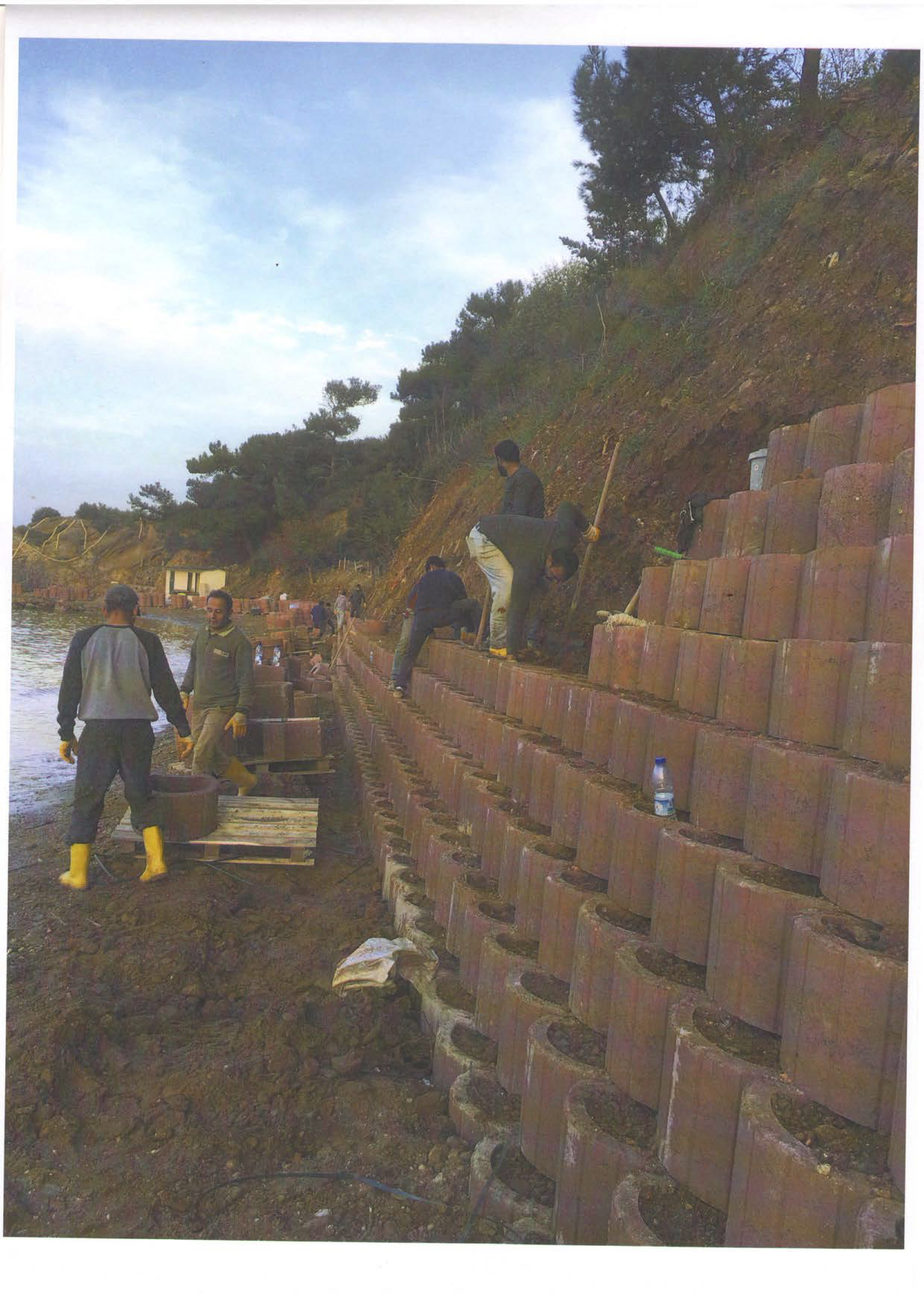 İmalatın gerekçesi daha da şaşırtıcıdır ki “toprak kaymasını önlemek” ve “dalgaların sürekli gevşek toprak yapısını oyarak toprağı denize taşımalarının önlenmesi” için doğanın bu büyük iki gücüne karşı saksı (çiçeklik) tipi şev taşı ve Acem halkası sarılıcı bitkisiyle yapılan alt yapı mücadelesi Adalar sahillerinde muhakkak yeni bir çığır açacaktadır.