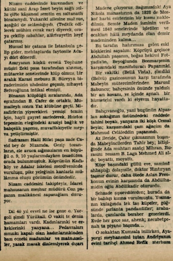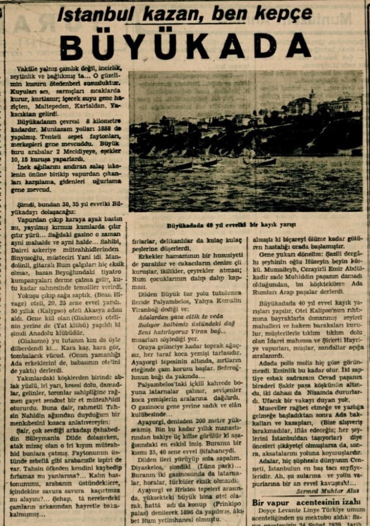 Sermed Muhtar Alus, “İstanbul Kazan, Ben Kepçe: Büyükada”, Akşam, 7.3.1939.