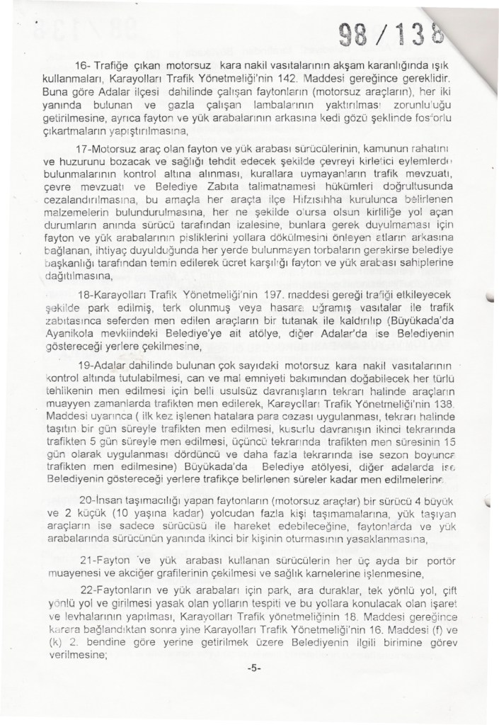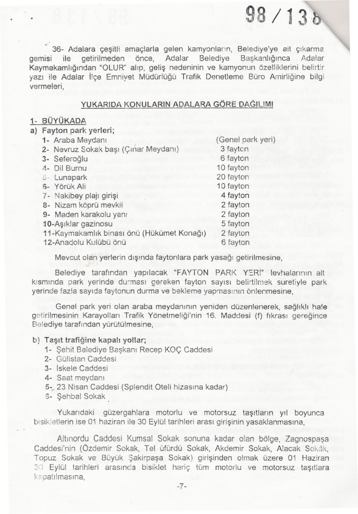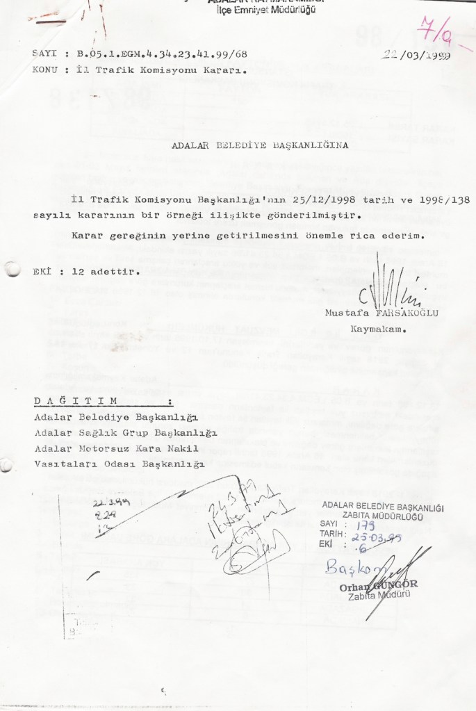 Ek-2: Adalar’da motorsuz vasıtalarla ilgili 25.12.1998 tarihli İl Trafik Komisyonu Kararı