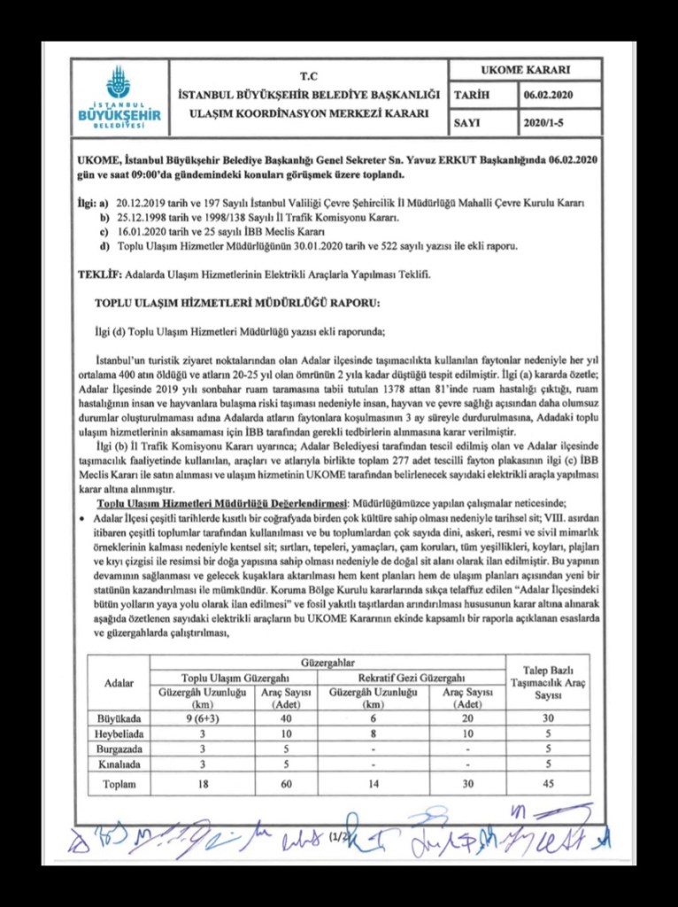 İlgi (b) İI Trafik Komisyonu Kararı uyarınca; Adalar BeIediyesi tarafından tescil edilmiş olan ve Adalar ilçesinde taşımacılık faaliyetinde kullanılan, araçları ve atlarıyla birlikte toplam 277 adet tescilli fayton plakasının ilgi (e) iBB Meclis Kararı ile satın alınması [⁉️] ve ulaşım hizmetinin UKOME tarafından belirlenecek sayıdaki elektrikli araçla [⁉️] yapılması karar altına alınmış. [HÜKÜMDÜZDÜR❗️]