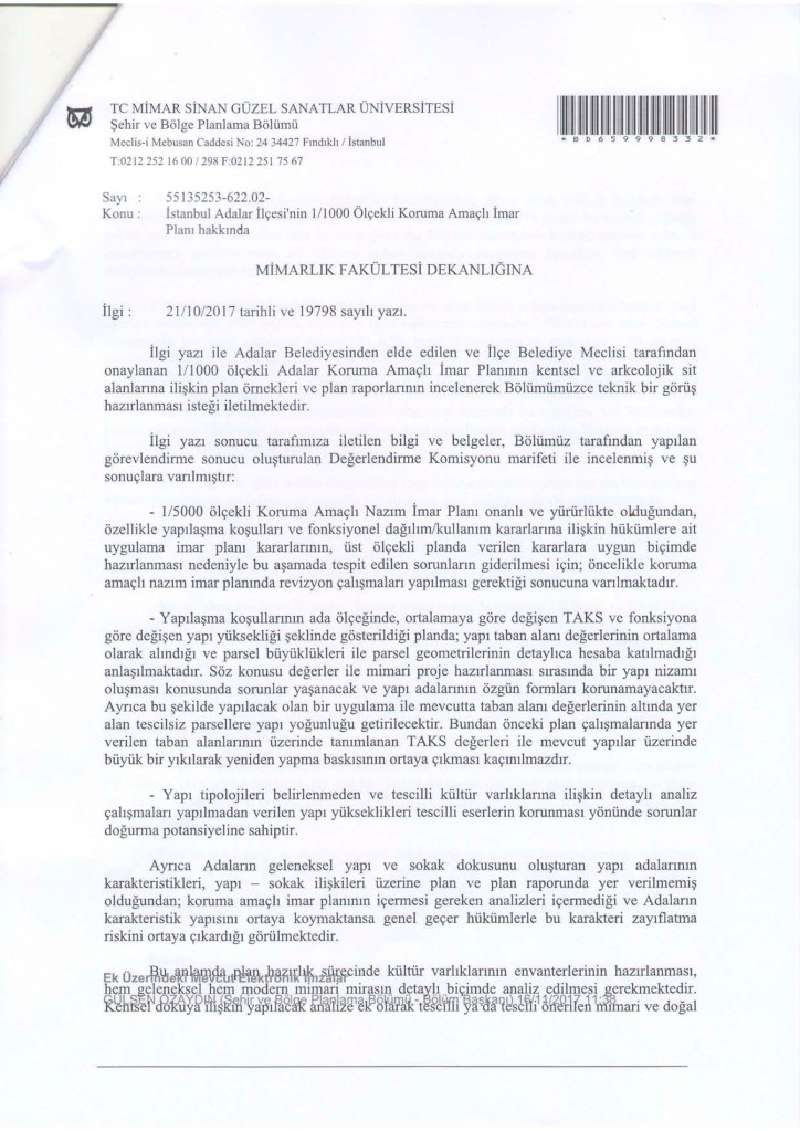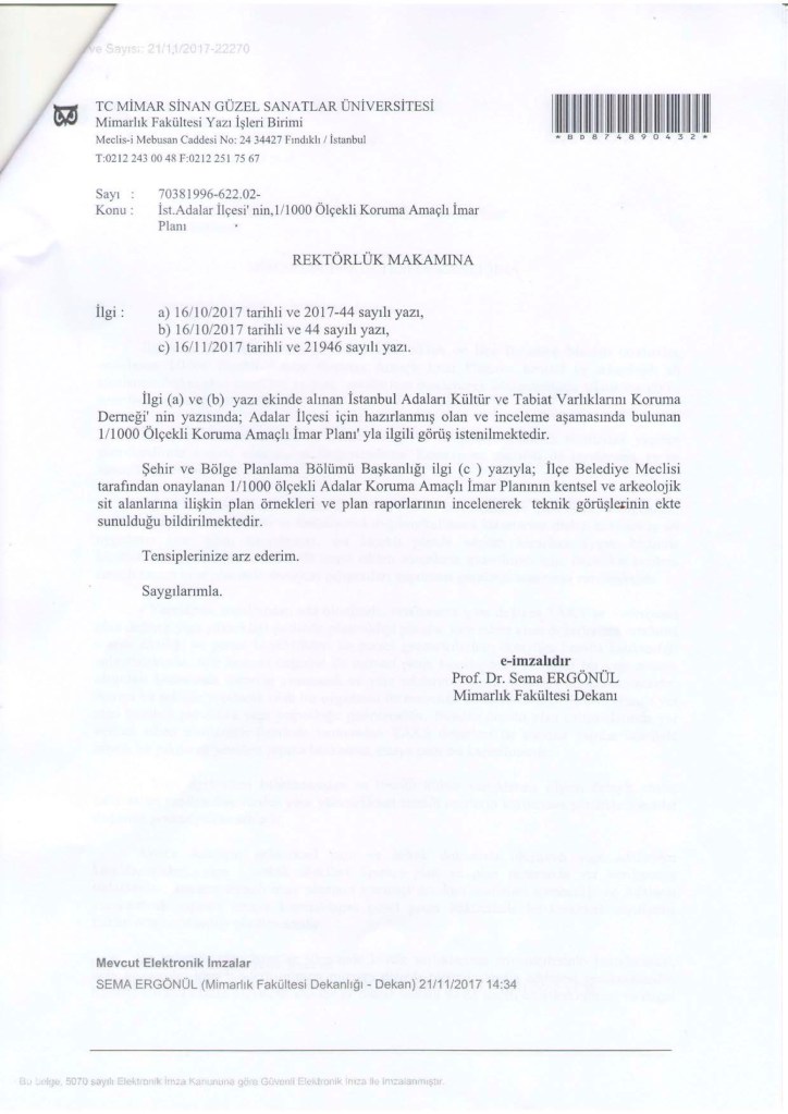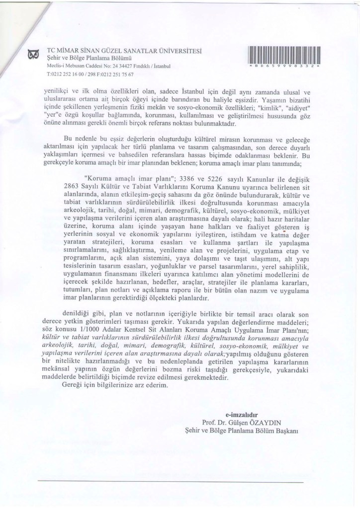 Bu kararın getirdiği serbest inşaat faaliyeti sonunda İBB’nin ve Adalar Belediyesi’nin KANİP ve KUAİP hazırlamasına gerek kalmayacaktır. Derneğimiz ayrıntılı bir yazıyla bu konuda İBB Şehir Planlama Müdürlüğü’nü uyarmakta ve Koruma Bölge Kurulu’nun geniş çaplı inşaata yol açacak bu kararın iptalini istemesi gerektiğinde ısrarlıdır.