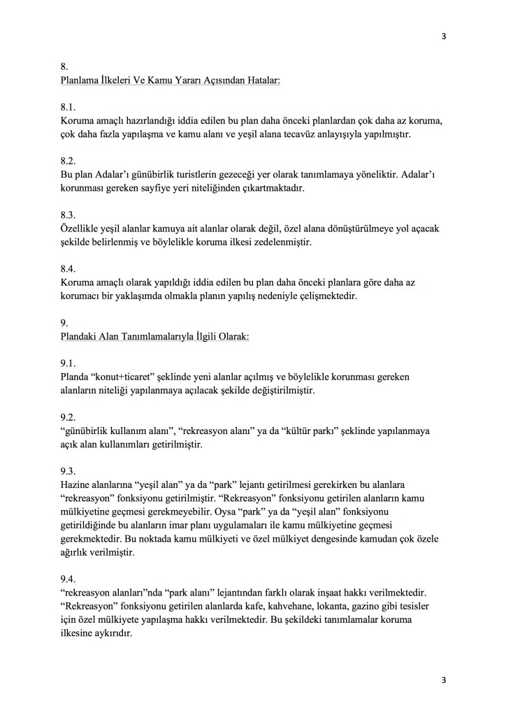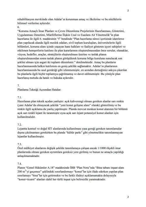 Üçüncü bir konu derneğimizin KANİP konusunda 11 yıldır yaptığı çalışmaların şimdi hazırlanmaya başlanan yeni KANİP’te dikkate alınmasını istemesiyle ilgilidir. İptal edilen 2011 yılına ait KANİP Adalar’ın korunması yerine tahribine yol açacak birçok tuzak taşıyordu. Bunlardan bir tanesi, herhalde en önemlisi, Adalar’da yapı stokunun neredeyse iki katına kadar çıkartacak bir tuzak Mimarlar Odası’nın açtığı dava sonucunda iptal nedeni oldu. Bu tuzağın ve derneğimizin eski KANİP’teki birçok yanlışı ve tuzağı gösteren itiraz ve dava tezlerini, hazırlanan yeni KANİP’te bu tahripkâr yanlışların tekrar edilmemesi için ayrı bir yazı halinde İBB Şehir Planlama Müdürlüğü’ne sunuyoruz.