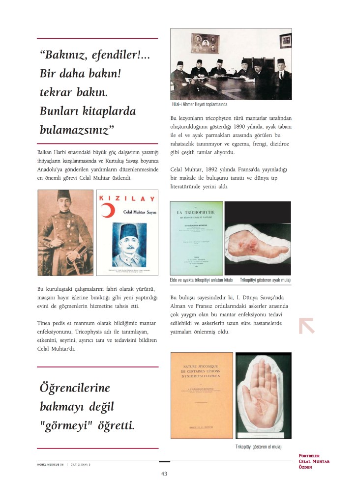 Hekimliğiyle dünya tarihine geçen Dr. Celâl Muhtar Özden; Tinea pedis et mannum olarak bilinen mantar enfeksiyonunu, tricophysis adıyla tanımlayan, etkenini, seyrini, ayırıcı tanı ve tedavisini bildiren kişidir. 1890 yılında, bu lezyonların tricophyton türü mantarlar tarafından oluşturulduğunu gösterdiğinde, ayak tabanı ile el ve ayak parmakları arasında görülen bu rahatsızlık henüz tanınmıyor ve egzema, frengi veya dizidroz gibi tanılar ile ele alınıyordu.