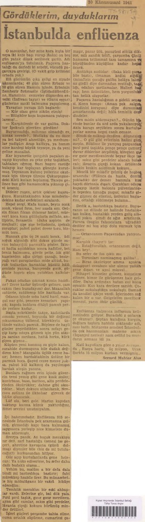 🔘 Sermed Muhtar Alus, “İstanbul’da Enflüenza”, Akşam, 30.1.1941.