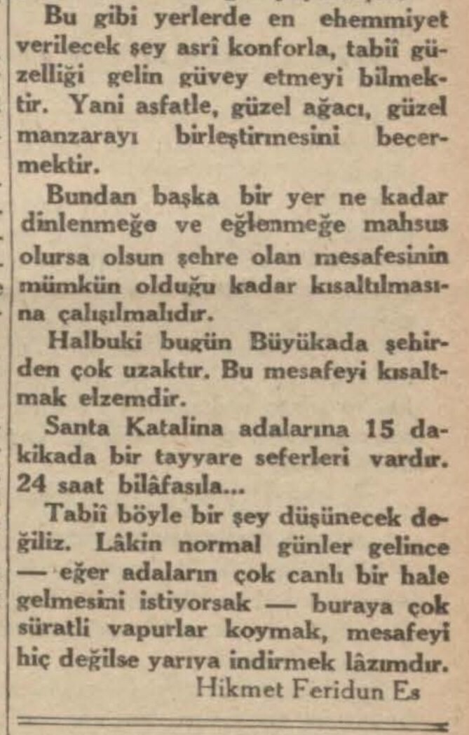 Hikmet Feridun Es, “Büyükada ve Santa Katalina”, Akşam, 21.8.1941.
