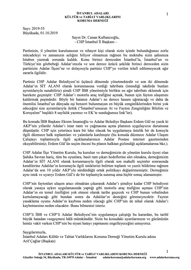 Hatırlatalım: 29 Mayıs 2020 günü partinizin Adalar İlçesi’ni ziyaret için Büyükada’ya çıkmıştınız, parti ilçe teşkilatınız size Büyükada’yı gezdirmişti. Büyükada’ya ayak bastığınız anda gözünüzün önündeki kaçak yapılaşmayı, işgalleri, ruhsatsız işletmeleri görmediniz, göstermediler ya da biliyordunuz da görmek istemediniz. Bu ihtimallerden hangisini seçerseniz seçin İstanbul gibi koca bir şehrin CHP il yönetimi başkanı için hiçbiri iyi bir seçim olmayacaktır.