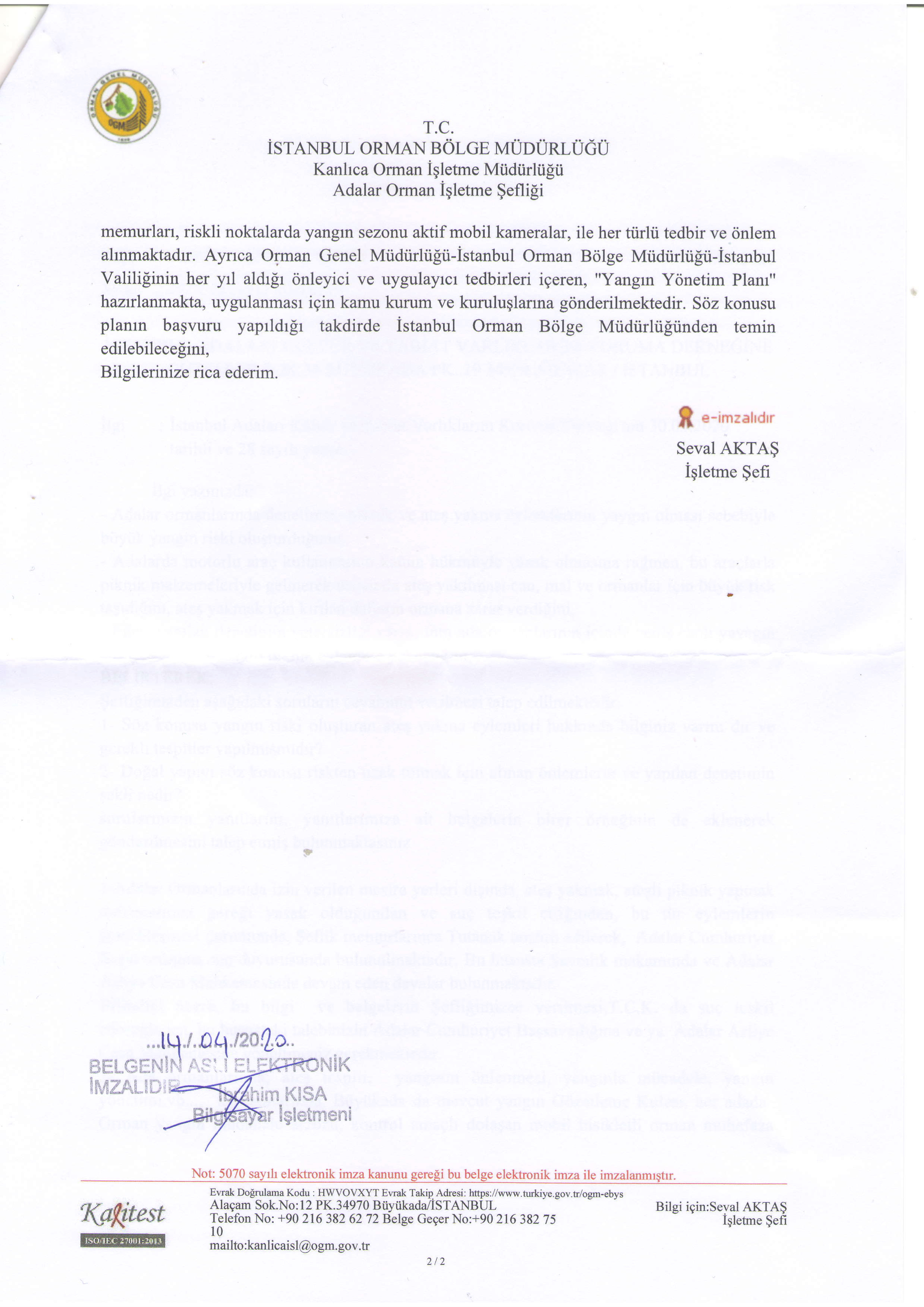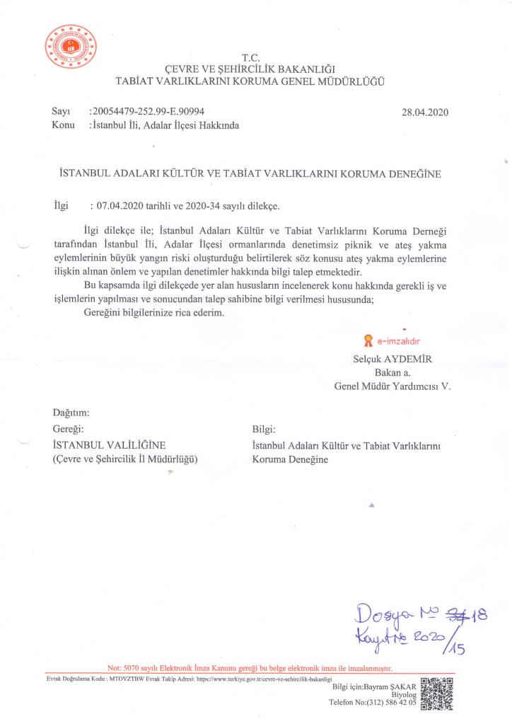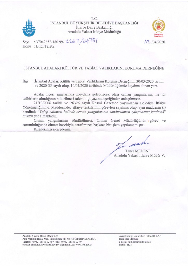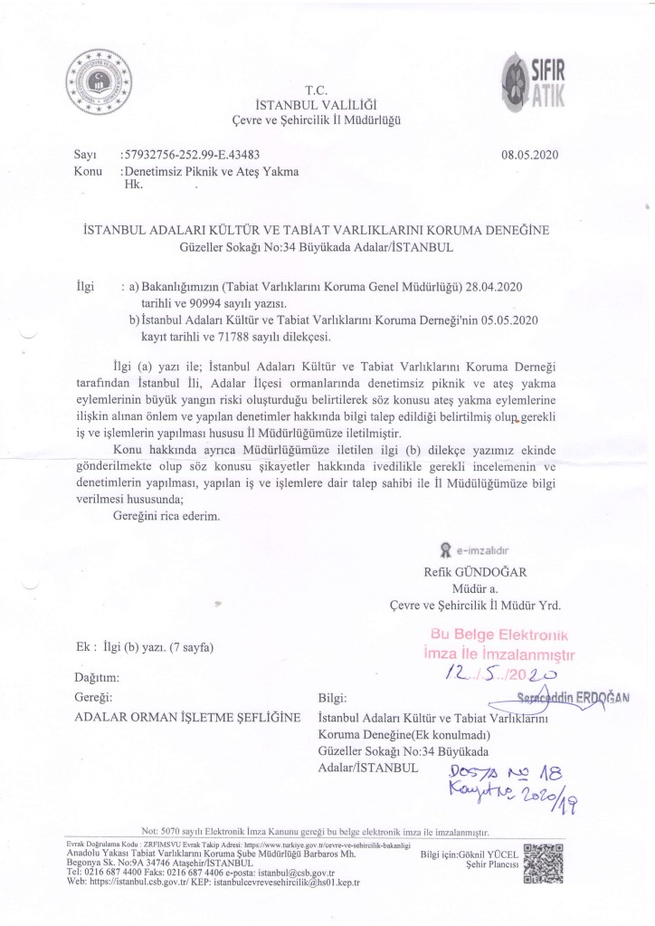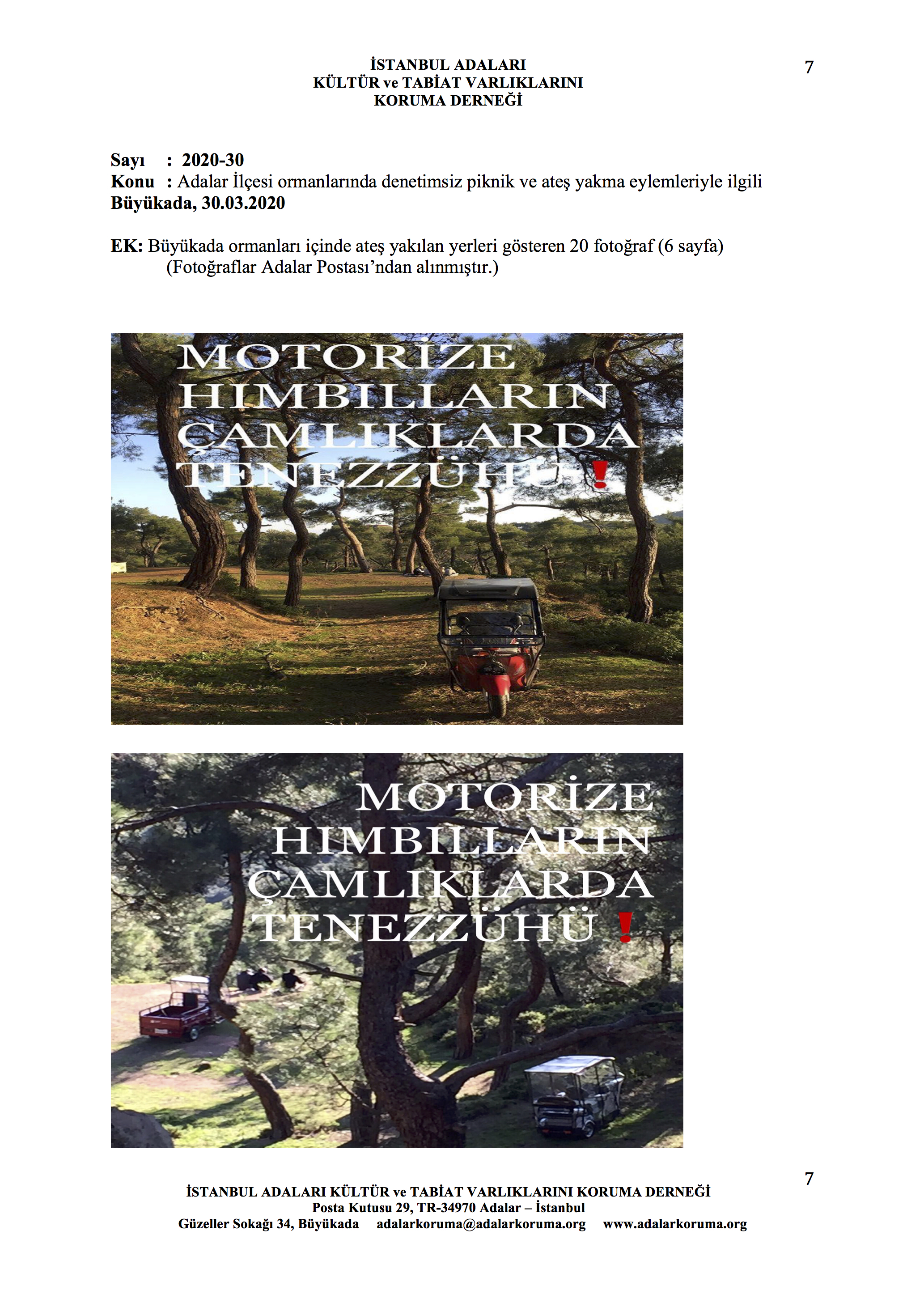 İstanbul Adaları Kültür ve Tabiat Varlıklarını Koruma Derneği’nin (İAKTVKD) 30.3.2020 tarihli “Adalar İlçesi ormanlarında denetimsiz piknik ve ateş yakma eylemleri” konulu resmî başvuruları ile gelen gelmeyen yanıtları…