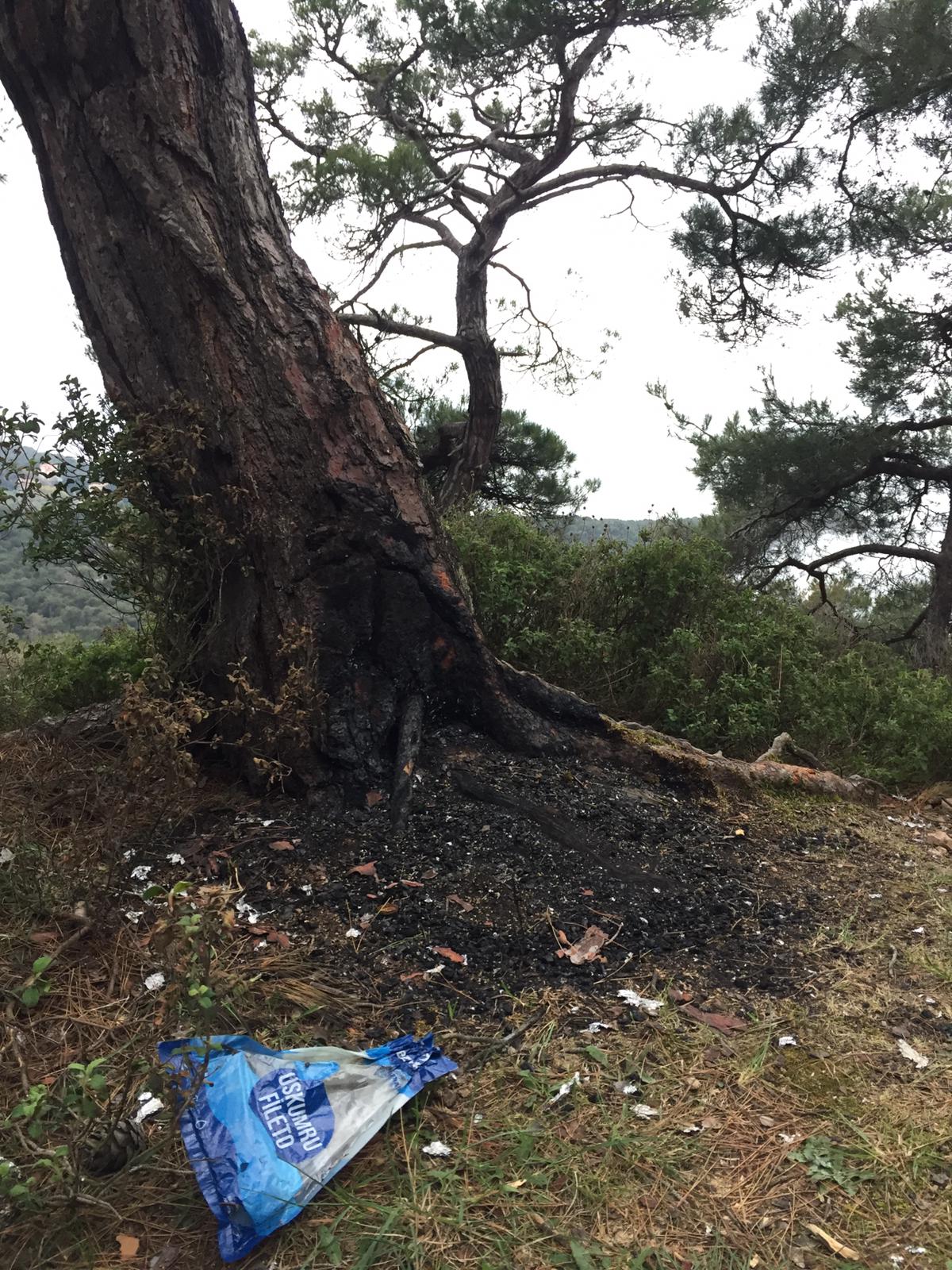 Adalar Orman İşletme Şefliği’nden gelen cevap ormanlarda ateş yakanların tespit edilip suç duyurusuyla savcılığa bildirildiği şeklindeydi. “Doğal yapıyı söz konusu riskten uzak tutmak için alınan önlemlerin ve yapılan denetimin şekli nedir?” sorumuza ise denetim yapıldığı şeklinde ayrıntılı cevap verilmişti ancak idarenin memurlarından daha sık ormanı gezen Ada sâkinleri mesire yerleri dışında ateşli piknikçileri görmekteydi ve yakılan ateşlerin izlerinin ve ocaklarının kalıcılığı yeni ateşlerin yakılmasını teşvik ediyordu. Nitekim dilekçelerimiz ekinde gönderdiğimiz fotoğraflarda görülen –İşletmesi’nce değil de duyarlı Ada sâkinlerince yıkılıp ortadan kaldırılan haricindeki kimi ocaklar ile ateş izleri dünkü yangına kadar bozulmamış olarak yerli yerinde duruyordu.