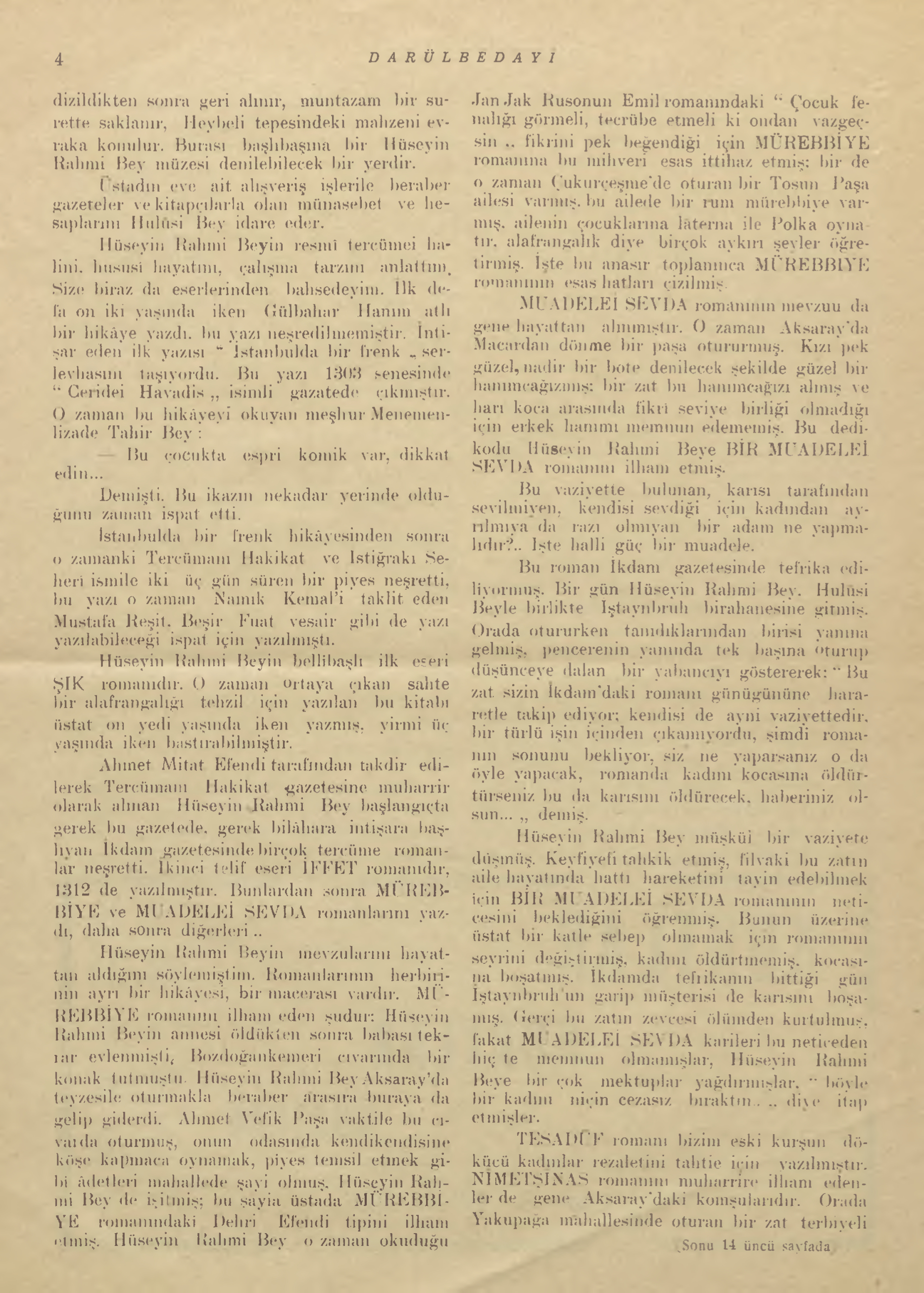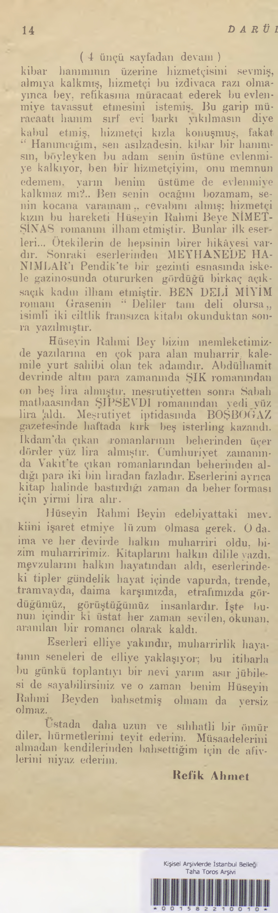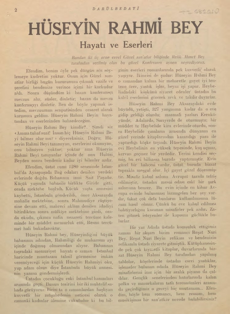 🔘 Refik Ahmet [Sevengil], “Hüseyin Rahmi Bey (Hayatı ve Eserleri)”, Darülbedayi (01.12.1932)2-4, 14.*