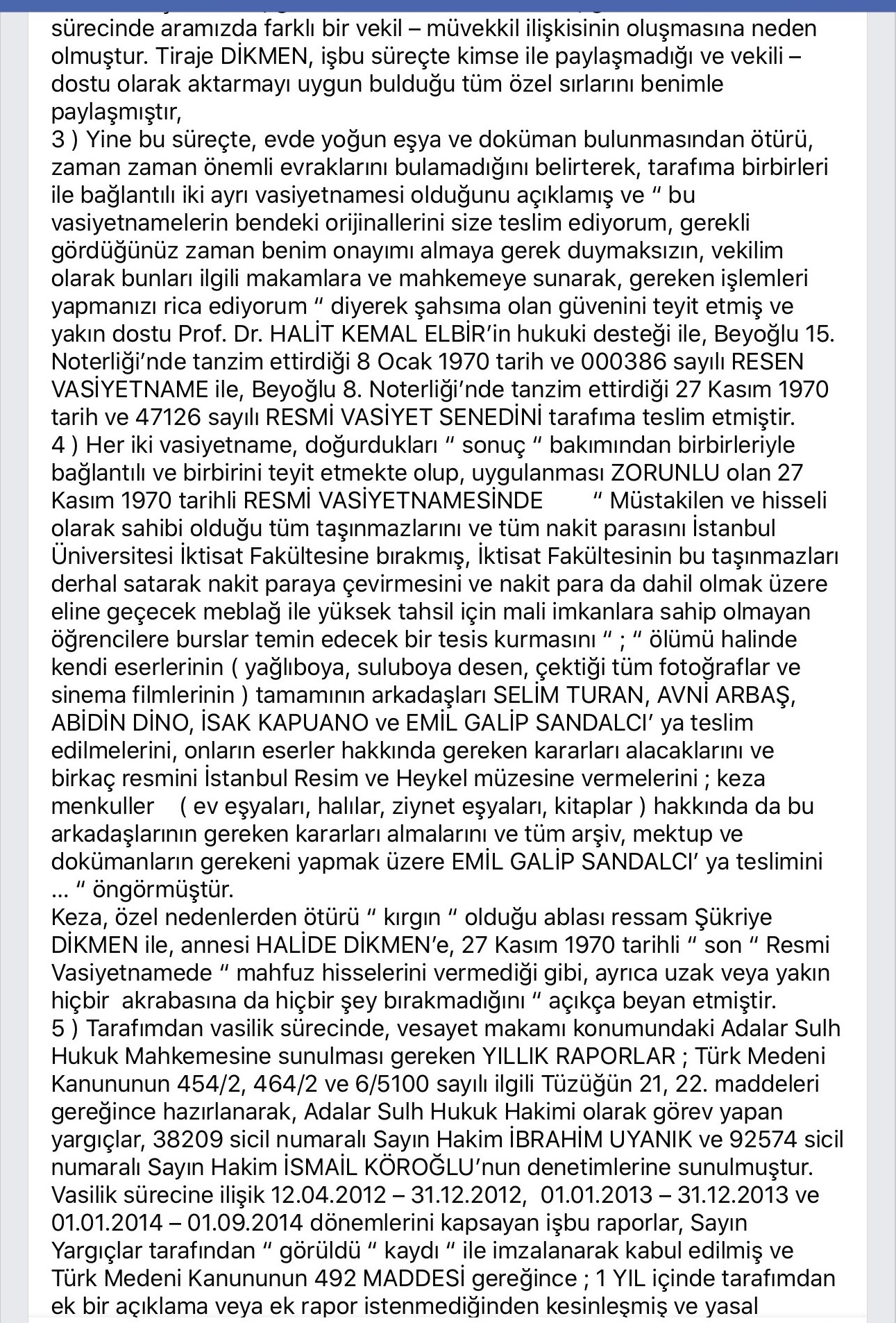 maddesinde ifade edilen hususlar bu şekliyle yanlış anlaşılmalara sebebiyet vereceğinden, “Tiraje Dikmen’in Adıyla ve Mirasıyla Oynanan Oyunlar”ı gereğince ifşa etmesi açısından Adalar Postası’nda yer aldığı haliyle şöyledir: