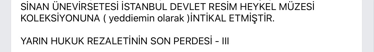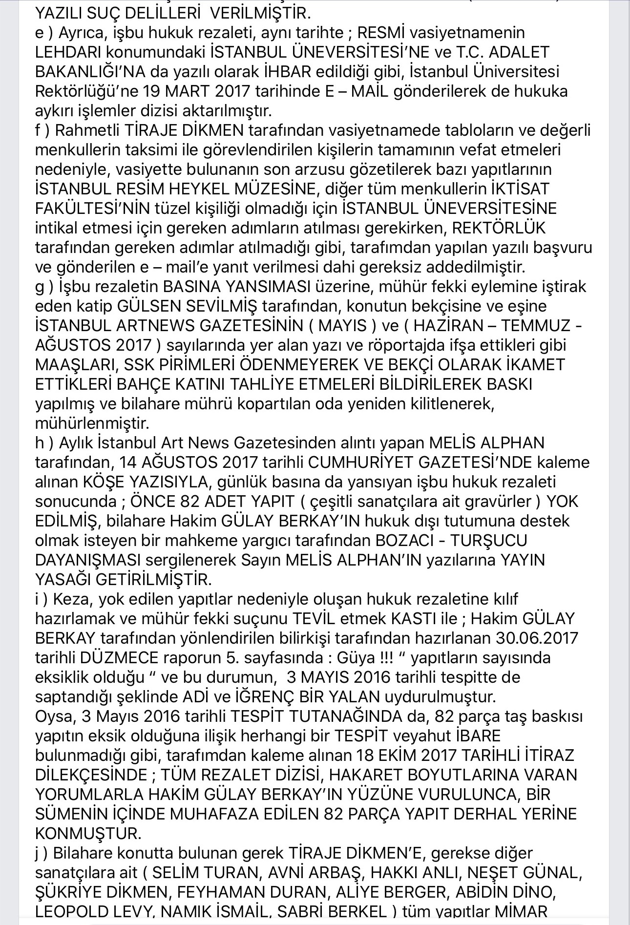 • Hakimin Oluşturduğu HUKUK REZALETİNİ ve gerçekleştirilmesi kuvvetle muhtemel olan YAĞMALAMA olayını, 3 YIL önce ; İstanbulArtNews Gazetesinin MAYIS 2017 tarihli, 42 sayısında ve HAZİRAN – TEMMUZ – AĞUSTOS 2017 tarihli, 43. Sayısında kapaktan girerek duyuran Sayın İDİL DENİZ TÜRKMEN, RAŞİT MUTLU ve KÜLTİGİN KAĞAN AKBULUT ile, işbu açıklamalardan ALINTI yaparak, 14 AĞUSTOS 2017 tarihli CUMHURİYET GAZETESİNDE görüşlerini açıklayan Sayın MELİS ALPHAN,