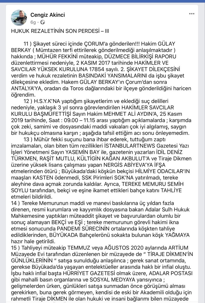 Cengiz Akıncı, “Hukuk Rezaletinin Son Perdesi-III”, Facebook, 18.8.2020-07:41.