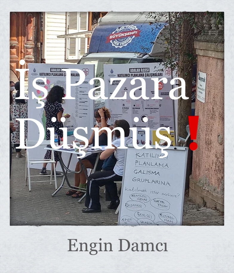 İBB Büyükada pazarında ve motör iskelesinde tezgâh açarak ahaliden imar planlarının yapımına katkıda bulunabilecek müşteri arama telâşına düşmüş.