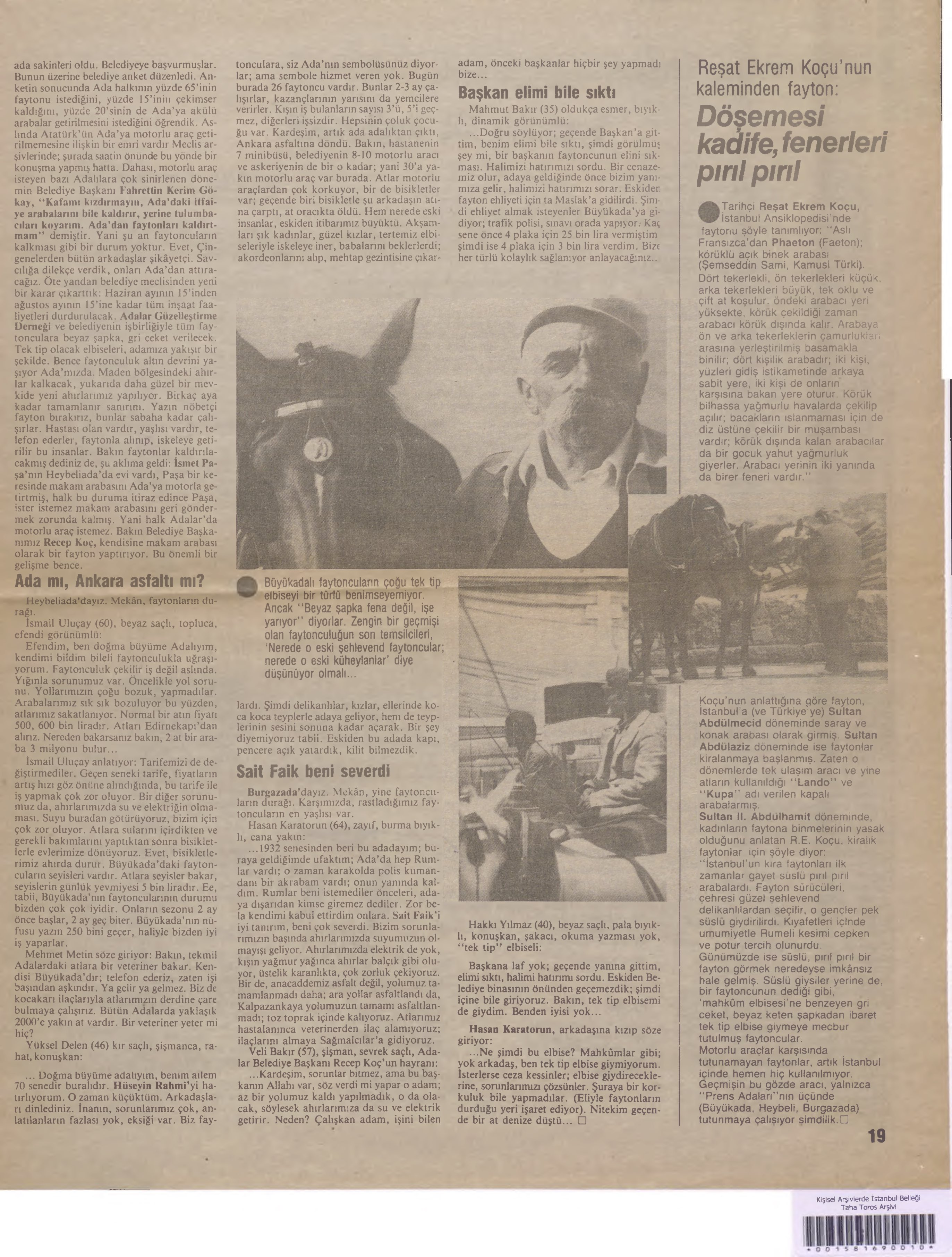 • Cezmi Ersöz, “Geçmişte Adına Kantolar Yazılan İstanbul Faytoncuları”, Cumhuriyet Dergi-?, (?.?.19??)18-19.