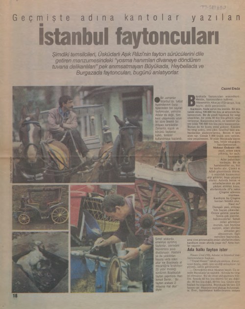 🔘 Cezmi Ersöz, “Geçmişte Adına Kantolar Yazılan İstanbul Faytoncuları”, Cumhuriyet Dergi-?, (?.?.19??)18-19.*