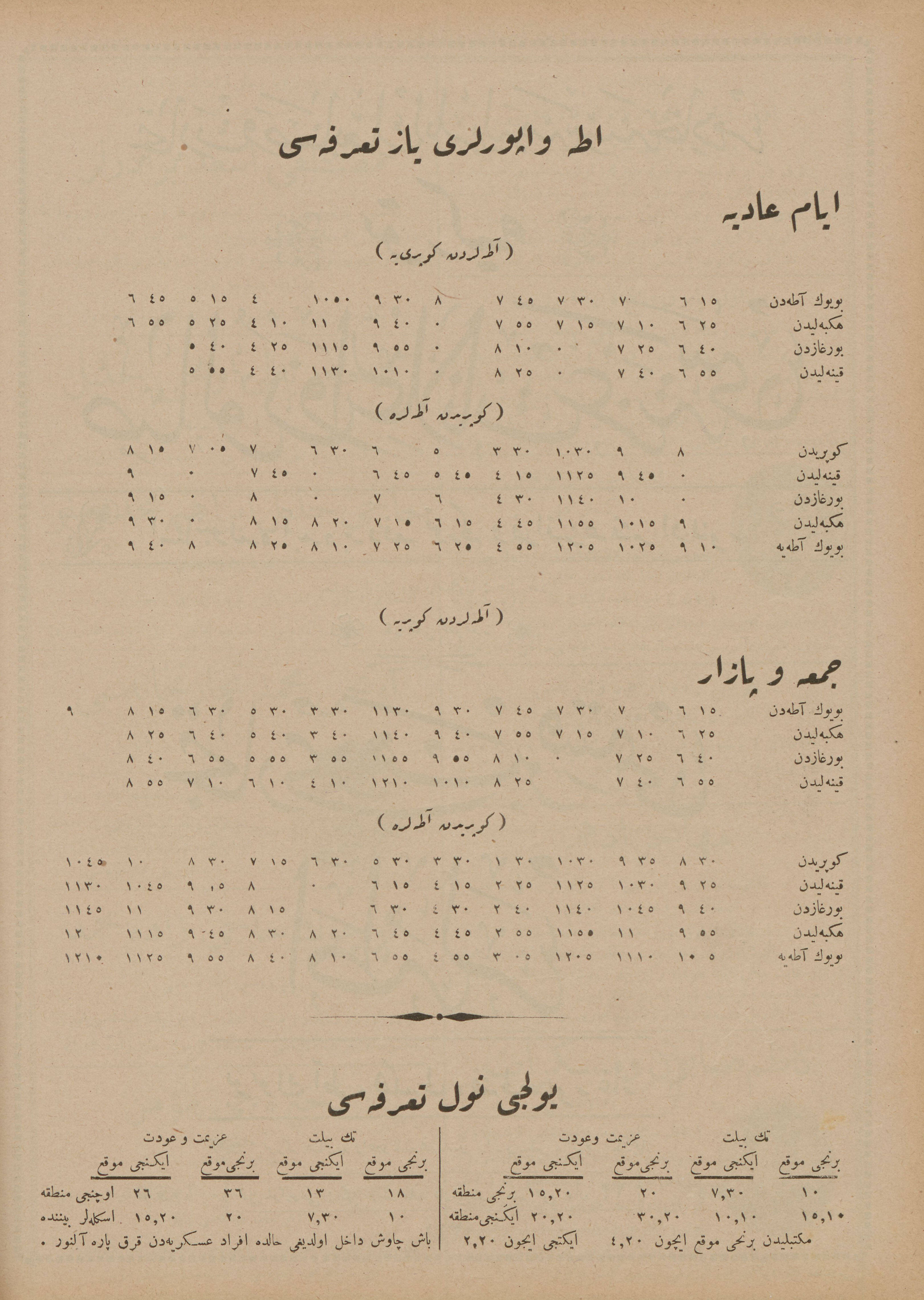 | Köprü’den | 08:30 | 09:35 | 10:30 | 13:30 | 15:30 | 17:30 | 18:30 | 19:15 | 20:30 | 22:00 | 22:45 |